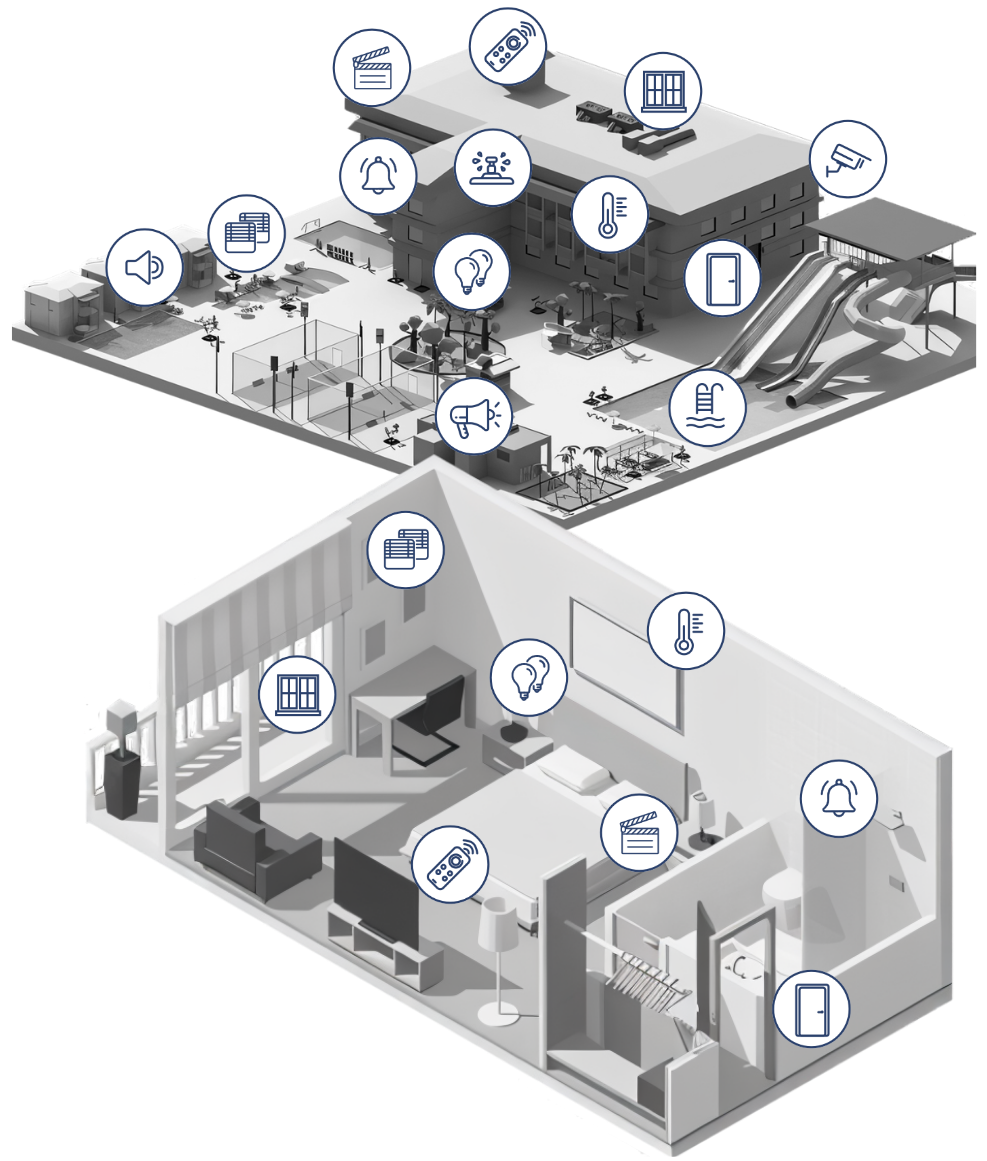 Controla iluminación, cortinados, audio, escenas y mucho mas desde el mismo dispositivo